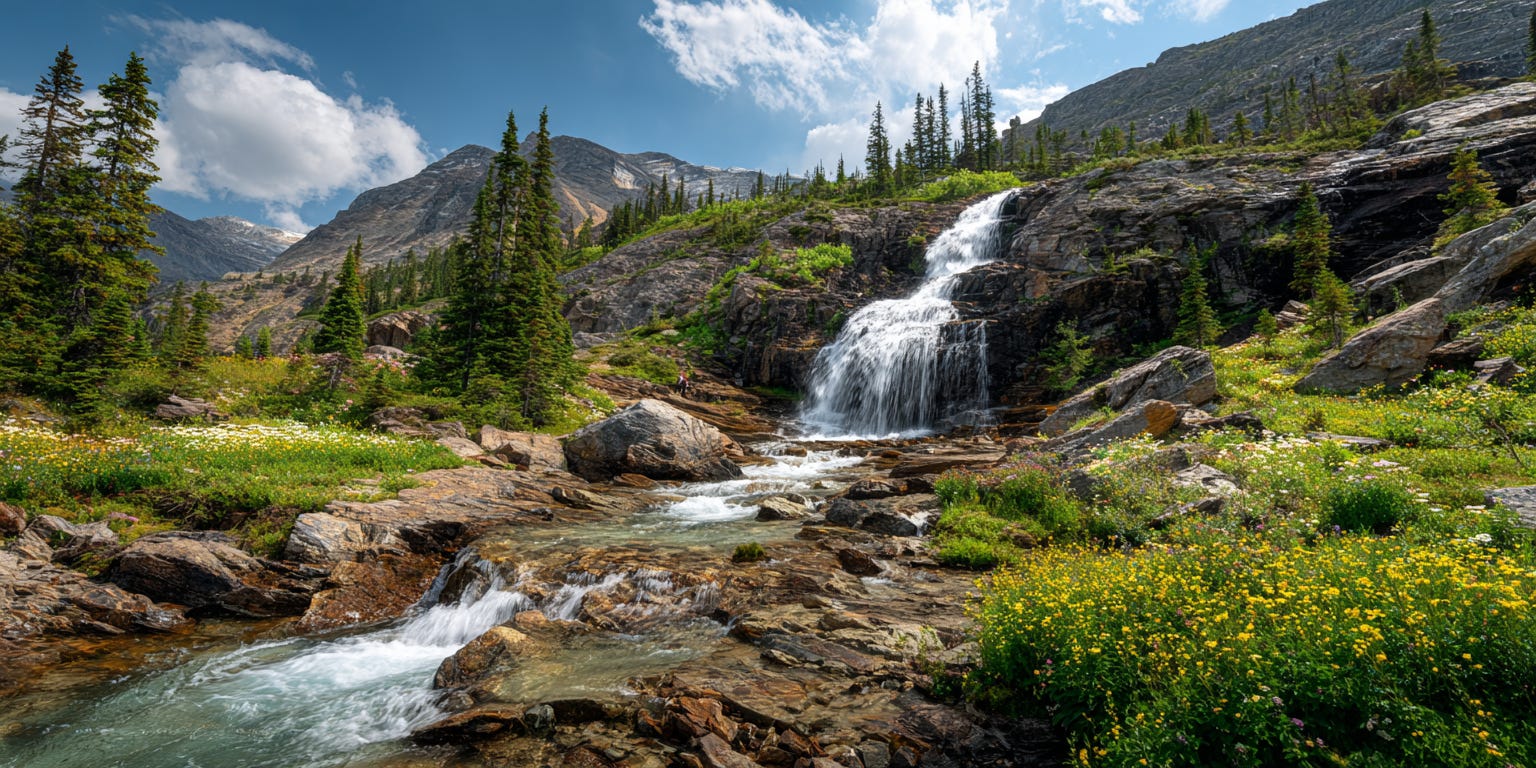 Glaciers, Waterfalls, and Alpine Meadows